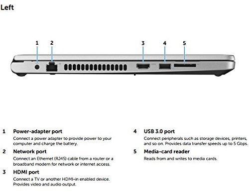 - HDMI 1.4a, USB 3.0 (1), USB 2.0 (2), Kensington lock slot, Media Card (SD, SDHC, SDXC), 10/100 RJ-45 Ethernet network